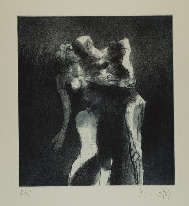 Galerie Bl.3 o.T. (du küßt)Mappe: Galerie "oben" Schnürpel P. "Für Stefan"Vernis mou/Aquatinta/Pinselätzung, 24,4x22,2 43,5x36,0 cm, 5/25 1986Schnürpel Peter