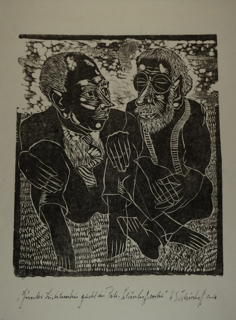 Galerie G. Lichtenstein guckt an P. Schönhoff vorbeiMappe: 4.HolzbildhauerpleinairHolzschnitt, 29,4x25,5 40,0x30,0 cm, 1-20 2004Schönhoff Peter