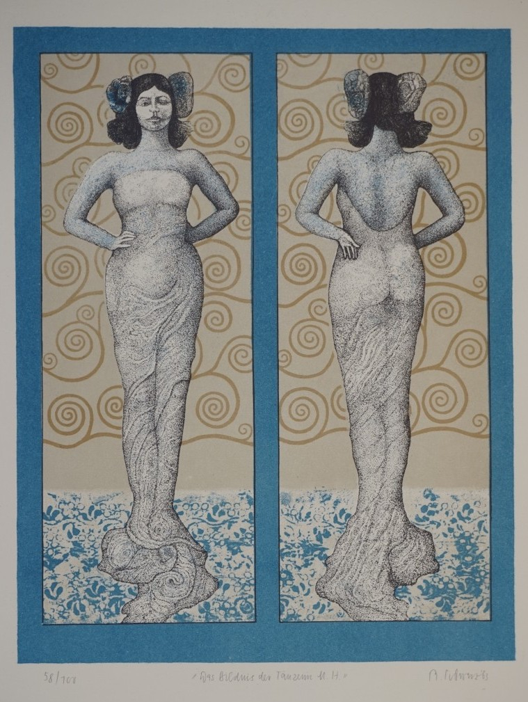 Galerie Das Bildnis der Tänzerin und Spionin M.H.Farblithografie in 4 Farben, 39,2x30,7 59,0x42,0 cm, 58/100 1963Schwarz Reiner