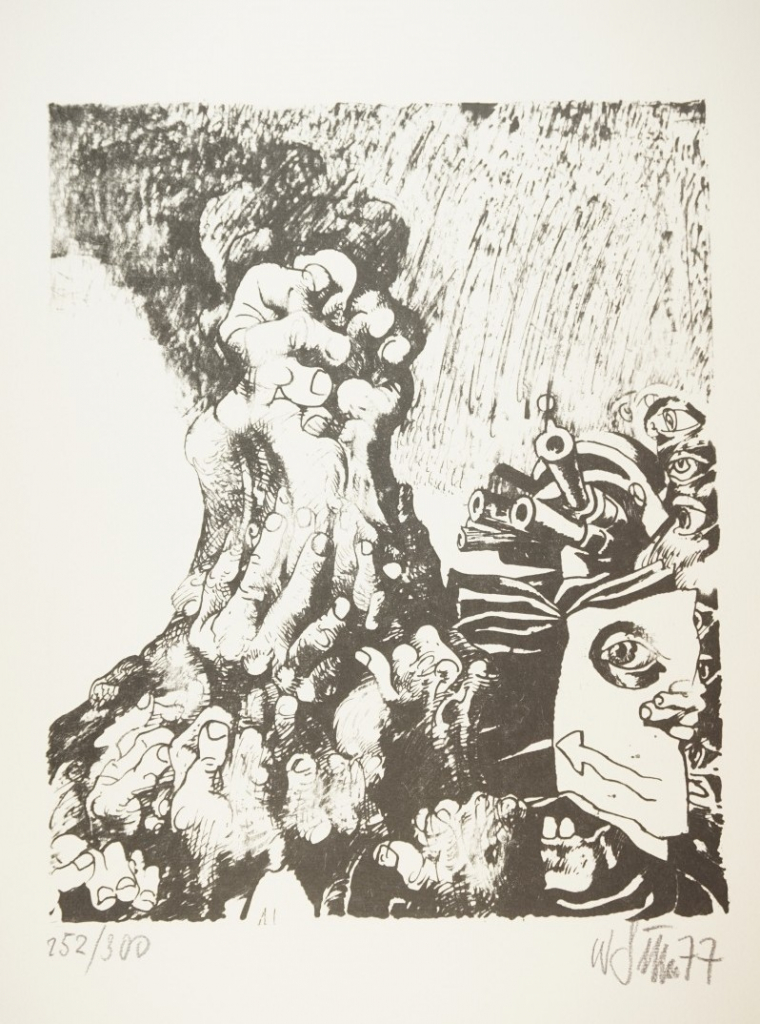Galerie Bl. 6 o.T.Mappe: Reclamverlag Grafikedition II "Die Flut"Zinklithografie, 48,0x36,0 32,2x26,5 cm, II/200 1977Sitte Willi