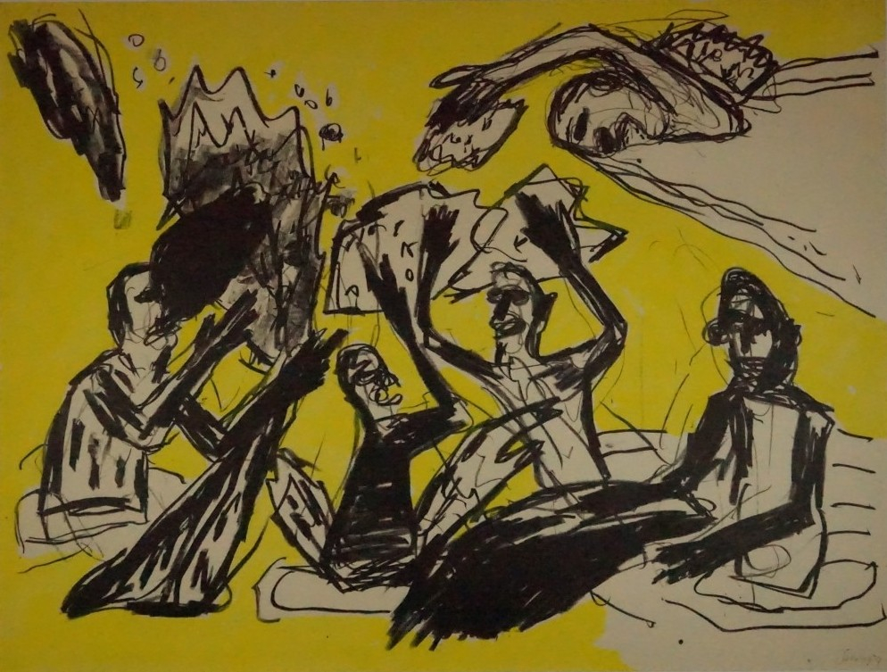Galerie Bl.23 Männer streiten sichMappe: Smy W. "Eintauchen"Farblithografie, 33,0x44,0 cm, 1984Smy Wolfgang