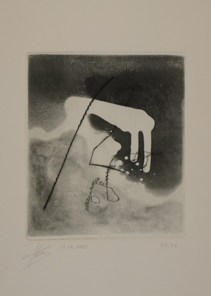 Galerie o.T. Bl.10Mappe: Sobolewski K. "omen"Radierung, 14,9x18,3 19,0x27,0 cm, 24/25 1983Sobolewski Klaus