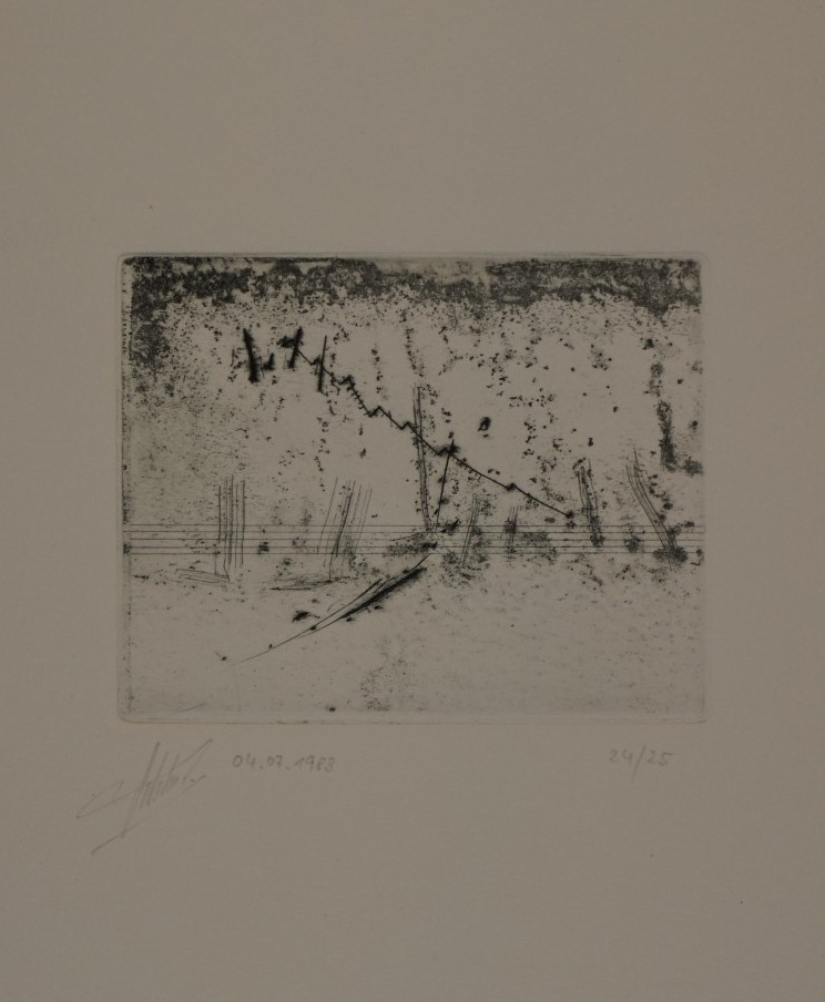 Galerie o.T. Bl.8Mappe: Sobolewski K. "omen" Radierung, 9,5x9,5 27,0x20,0 cm, 24/25 1983Sobolewski Klaus