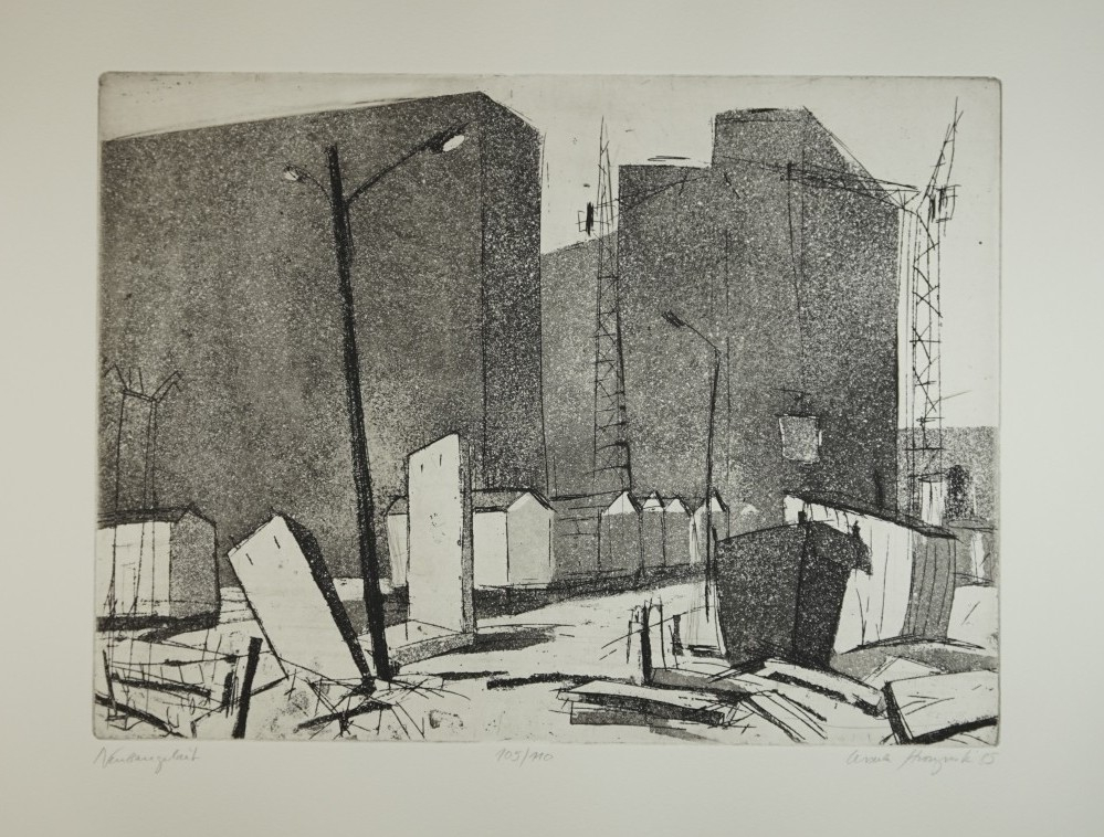 Galerie Bl.7 NeubaugebietMappe: Reclamverlag Grafikedition XXV Strozynski U. "Berlin-Ansichten"Radierung, 28,5x38,5 39,3x53,5 cm, 105/110 1985Strozynski Ursula