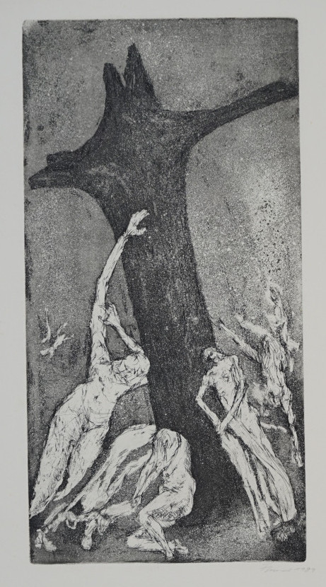 Galerie Den zu Kreuze Kriechenden gewidmetRadierung/Aquatinta, 39,0x20,0 53,3x39,6 cm, 1989Cremer Fritz