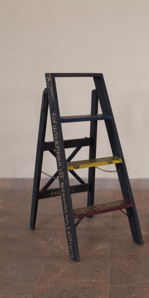 Galerie Eine Leiter ist erotisch-ein Leitermann ist besonders erotisch.Holz bemalt, 90,0x40,0x52,0 cm, 2000Süß Klaus