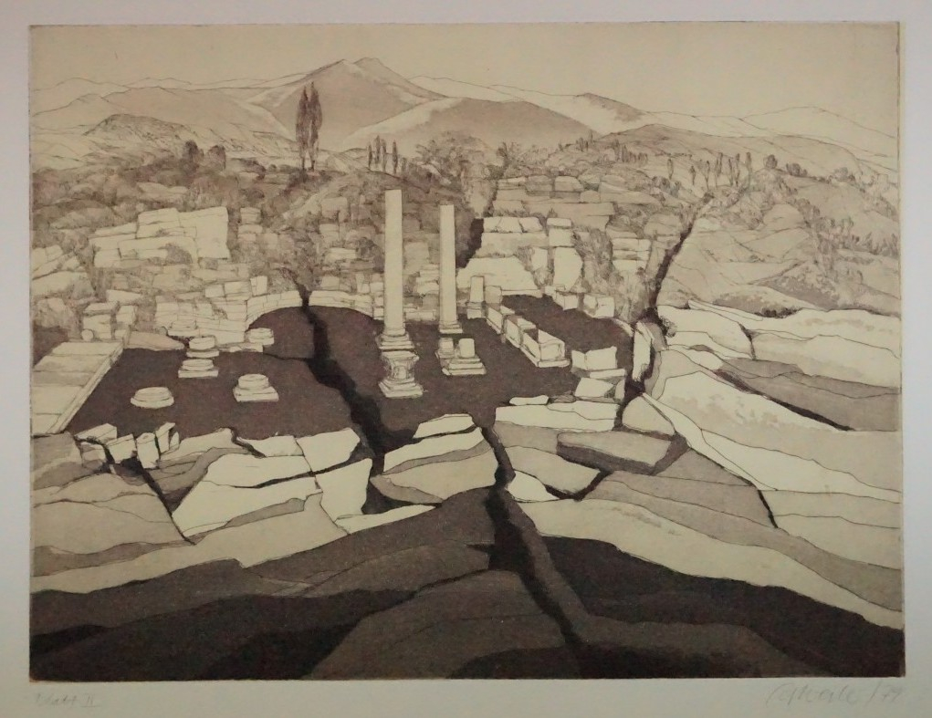 Galerie Bl.2 Salona, Verwandlung IMappe: Grafik-Presse "eikon" Sylvester P. "Dalmatinischer Aufenthalt"Aquatinta, 29,7x39,5 38,5x49,0 cm, 21/50 1979Sylvester Peter