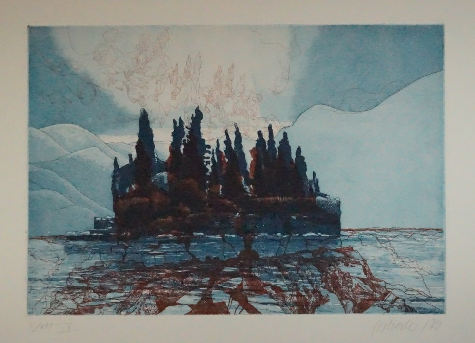 Galerie Bl.9 InselvisionMappe: Grafik-Presse "eikon" Sylvester P. "Dalmatinischer Aufenthalt"Aquatinta, 24,7x35,5 38,5x49,0 cm, 21/50 1979Sylvester Peter