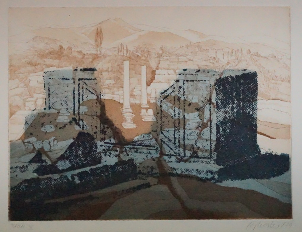 Galerie Bl.10 Awarische Spur IMappe: Grafik-Presse "eikon" Sylvester P. "Dalmatinischer Aufenthalt"Aquatinta, 30,0x39,5 38,5x49,0 cm, 21/50 1979Sylvester Peter