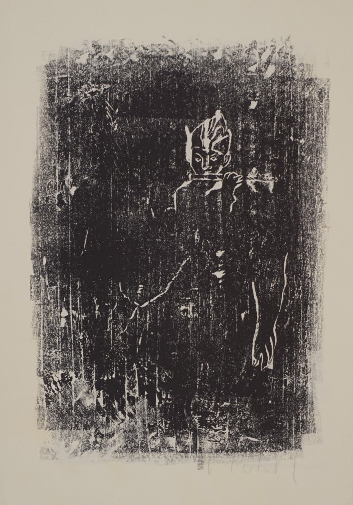 o.T. Doppelseitig bedruckt Flötenspieler