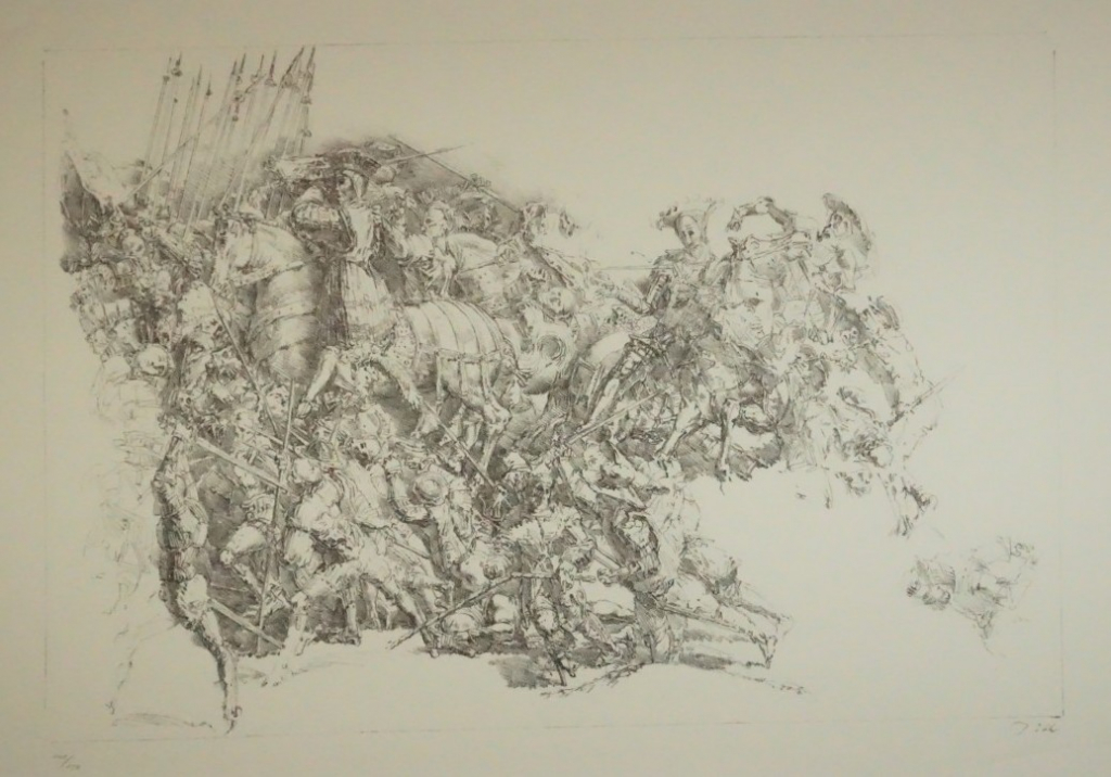Galerie Bl.6 Schlacht bei FrankenhausenMappe: Reclamverlag Grafikedition XI Tübke W. "Vom schöneren Tod"Lithografie, 16,0x24,5 39,0x52,5 cm, 101/150Tübke Werner