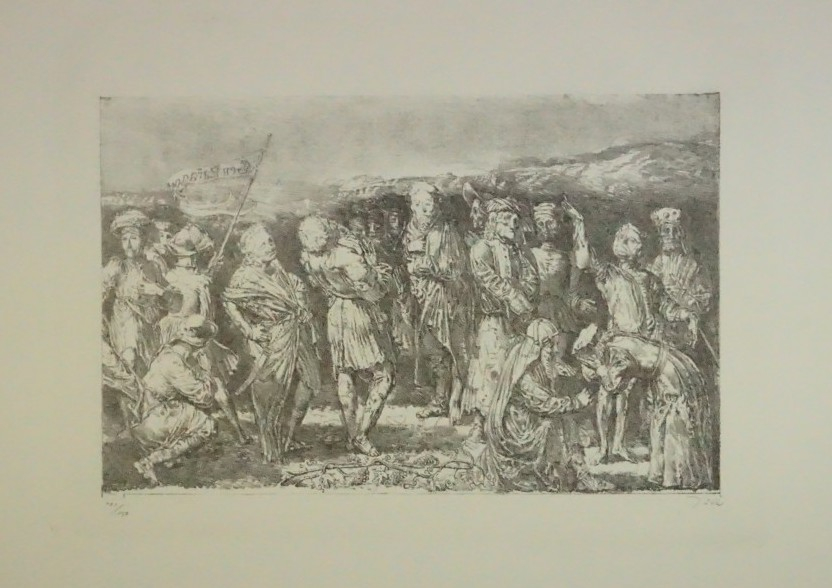Galerie Bl.1 Gen NarragonienMappe: Reclamverlag Grafikedition XI Tübke W. "Vom schöneren Tod"Lithografie, 27,0x37,5 39,0x52,5 cm, 101/150Tübke Werner