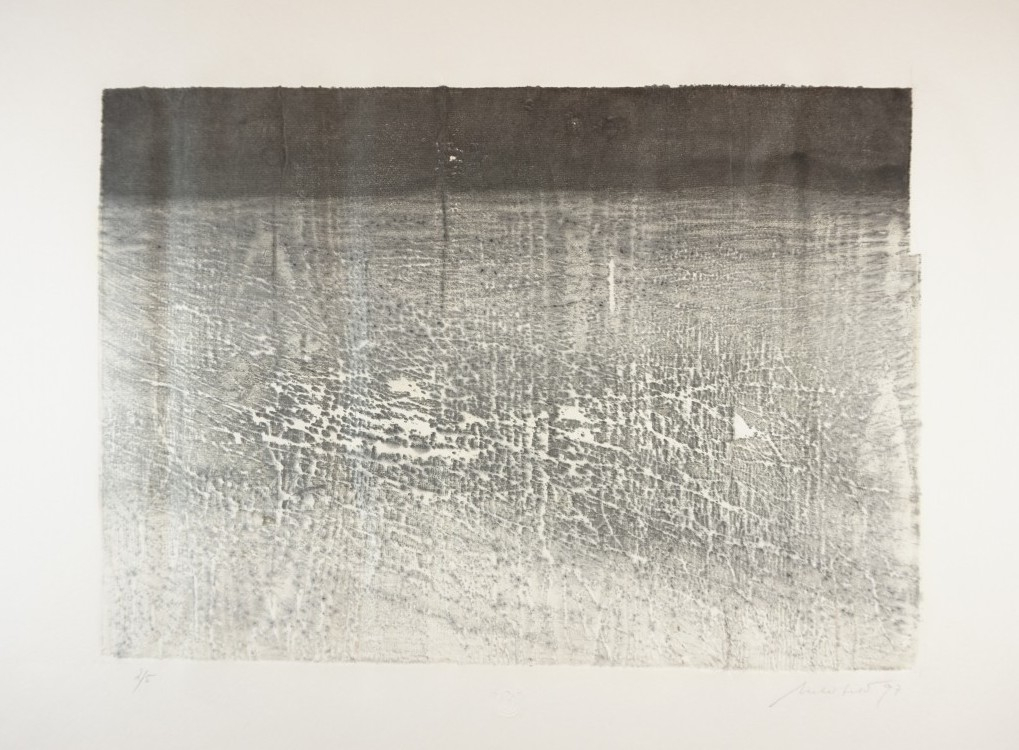 Galerie Bl. 1 o.T.Mappe: Ueberfeld B. "Wasser, Erde, Luft und ein bißchen Mensch"Holzriss, 29,5x42,0 44,4x59,5 cm, 2/5 1997Ueberfeld Bodo