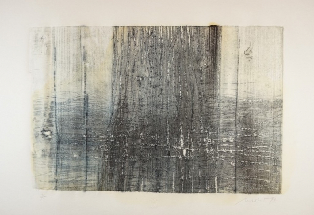 Galerie Bl. 3 o.T.Mappe: Ueberfeld B. "Wasser, Erde, Luft und ein bißchen Mensch"Holzriss, 27,2x42,0 44,4x59,5 cm, 2/5 1997Ueberfeld Bodo