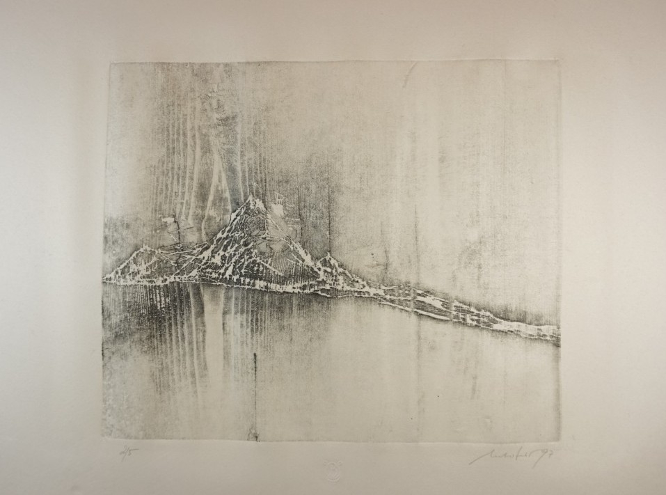 Galerie Bl. 5 o.T.Mappe: Ueberfeld B. "Wasser, Erde, Luft und ein bißchen Mensch"Holzriss, 27,7x33,7 44,4x59,5 cm, 2/5 1997Ueberfeld Bodo