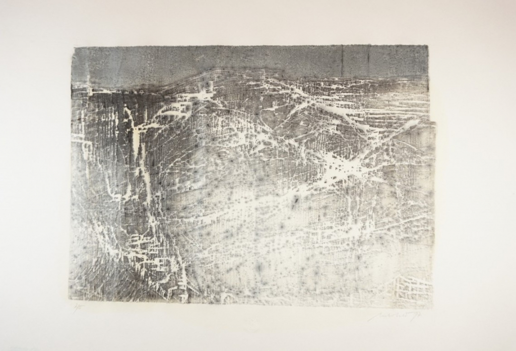 Galerie Bl. 10 o.T.Mappe: Ueberfeld B. "Wasser, Erde, Luft und ein bißchen Mensch"Holzriss, 29,2x41,0 44,4x59,5 cm, 2/5 1997Ueberfeld Bodo