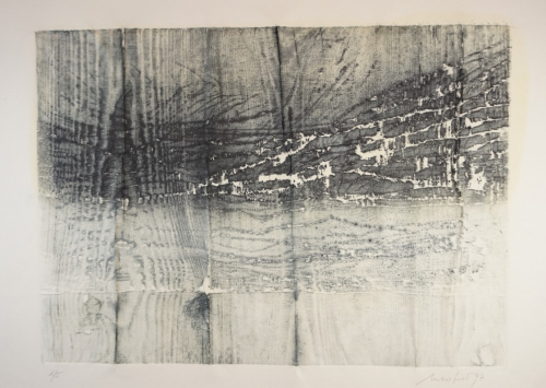 Galerie Bl. 15 o.T.Mappe: Ueberfeld B. "Wasser, Erde, Luft und ein bißchen Mensch"Holzriss, 29,6x41,2 44,4x59,5 cm, 2/5 1997Ueberfeld Bodo