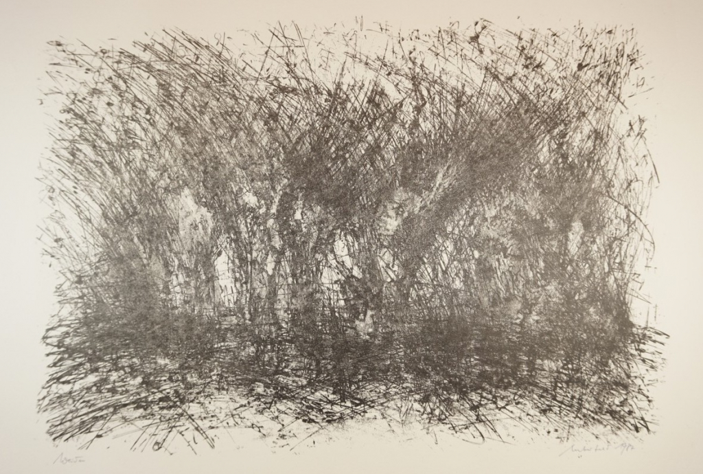 Galerie Bl. 9 WeidenMappe: Ueberfeld B. "von dünenweg und mandelbaum"Lithografie, 33,5x48,0 60,0x45,0 cm, 3/10 1987Ueberfeld Bodo