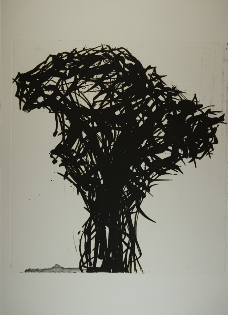 Galerie Bl.6 o.T. BaumMappe: burgart-presse 18.Druck Uhlig M. "Wegrandworte"Radierung,Aquatinta,Reservage auf Kupferdruckkarton, 39,3x36,5 57,5x40,5 cm, 7/50 1997Uhlig Max