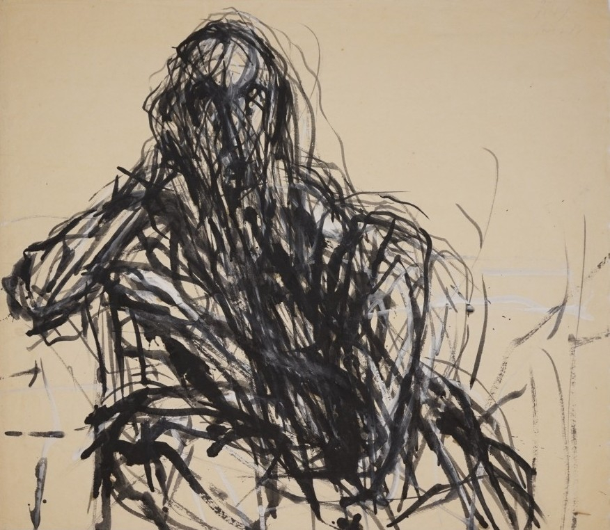 Galerie Bildnisstudie S.J. mit aufgestützter HandLithotusche, Deckweiß auf Japanpapier, 54,0x62,0 cm, 1984Uhlig Max