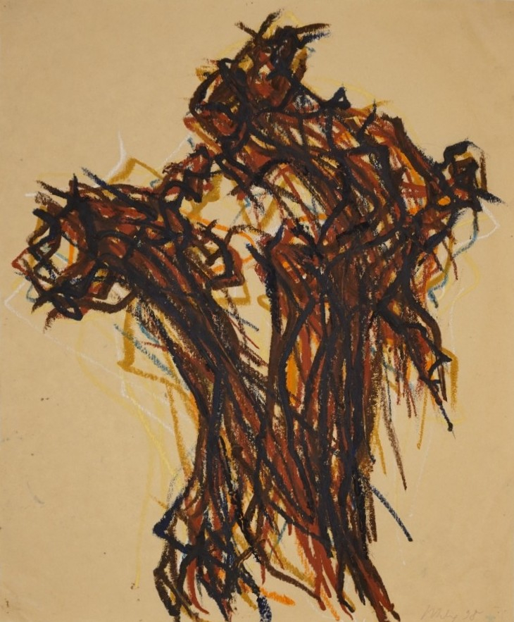 Ölkreide auf getönten Japanpapier
