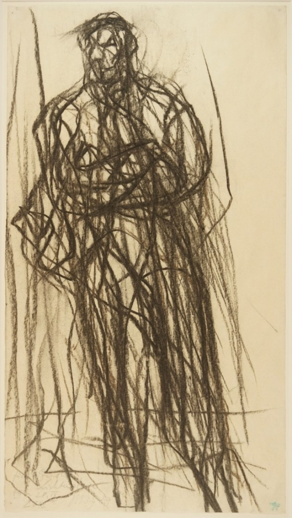 Galerie "Stehende männliche Person" (Straßenszene) Kohle auf Papier, 49,5x27,3 cm, 1984 PapierUhlig Max