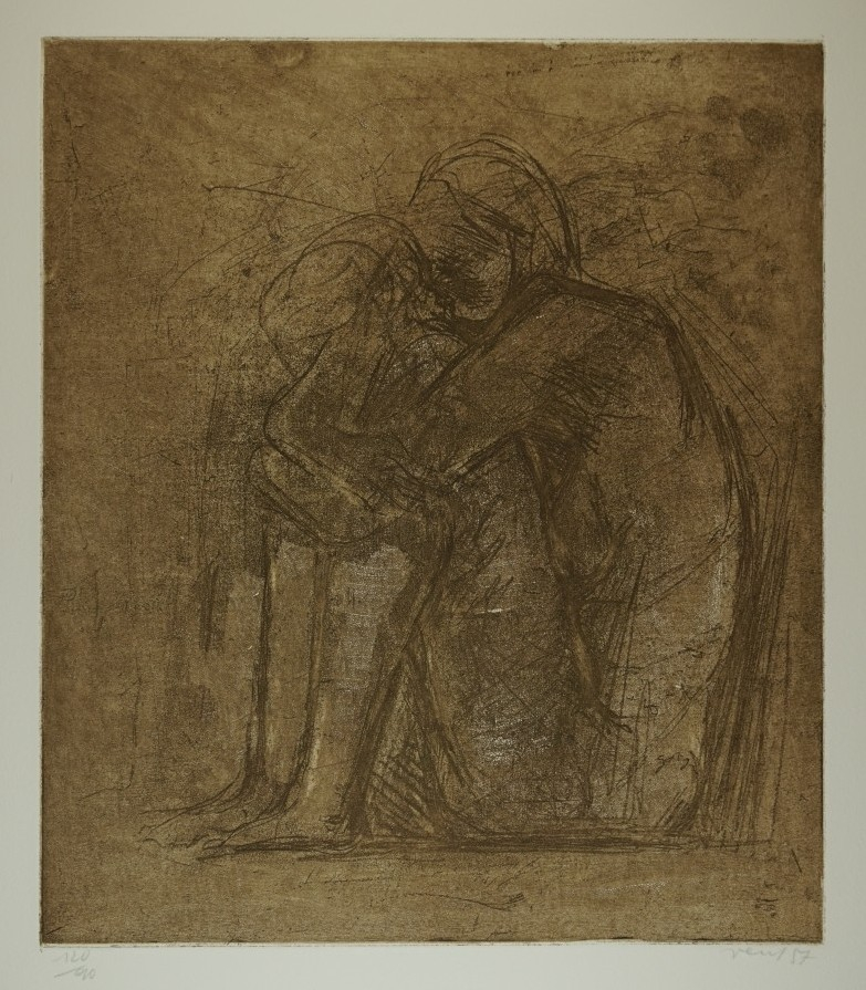 Galerie Bl.10 HockendeMappe: Berliner Grafikpresse "Wir sind einmal Ganze gewesen"Radierung, 54,0x39,5 34,2x29,7 cm, 90/120 1987Vent Hans