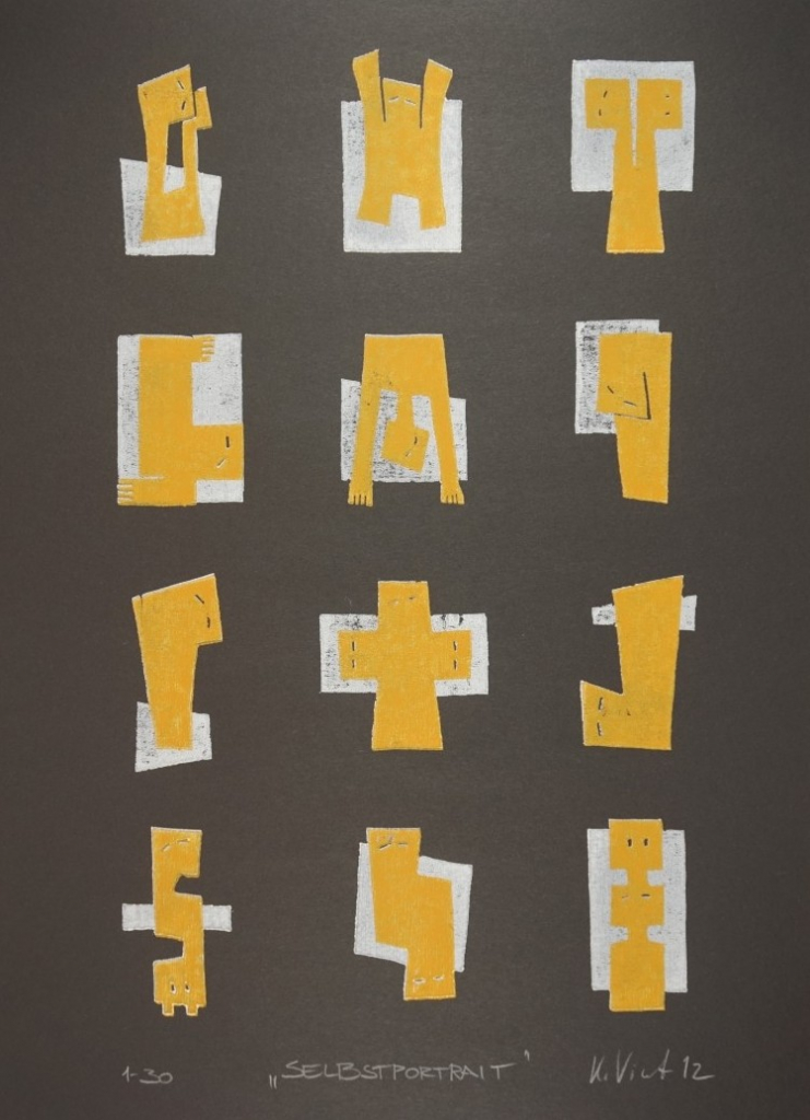 Galerie Bl.12 SelbstporträtMappe: 12.HolzbildhauerpleinairFarbholzschnitt, 33,5x19,5 40,0x30,0 cm, 1/30 2012Vicent Kerstin