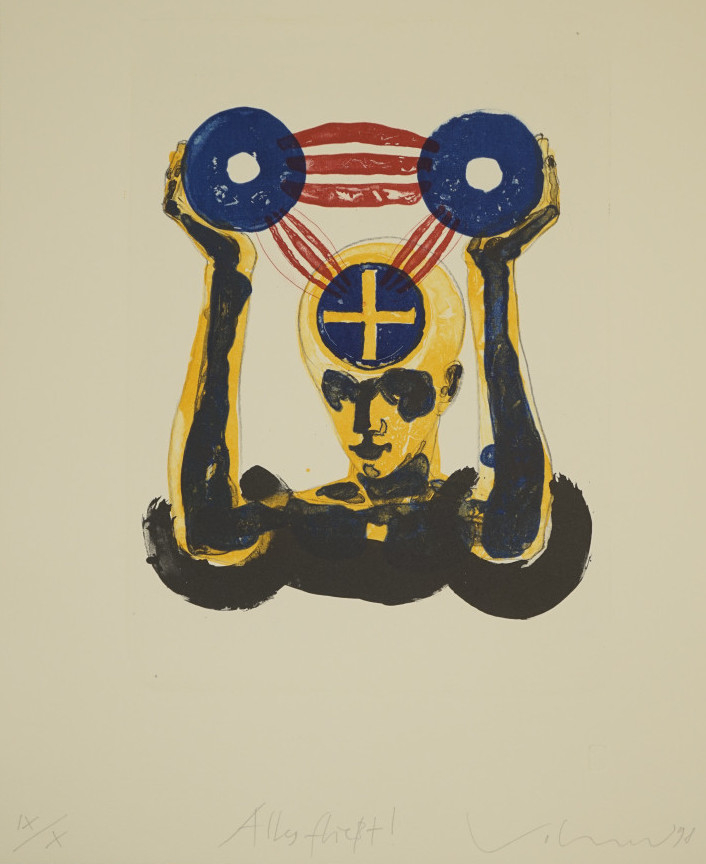 Galerie Alles fließtMappe: Galerie "oben" 1/4 JahrhundertLithografie vierfarbig auf Bütten, 31,8x24,7 53,5x39,8 cm, Belegex. IX/X 1998Volmer Steffen