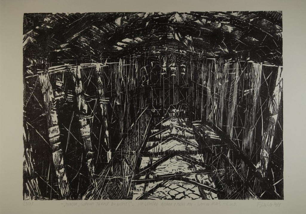 Galerie "Mensch warum träumst Du nicht?...Mappe: Nachdenken über Carl von OssietzkyHolzschnitt, 33,5x46,0 54,0x39,0 cm, 23/75 1988Wahle Frank