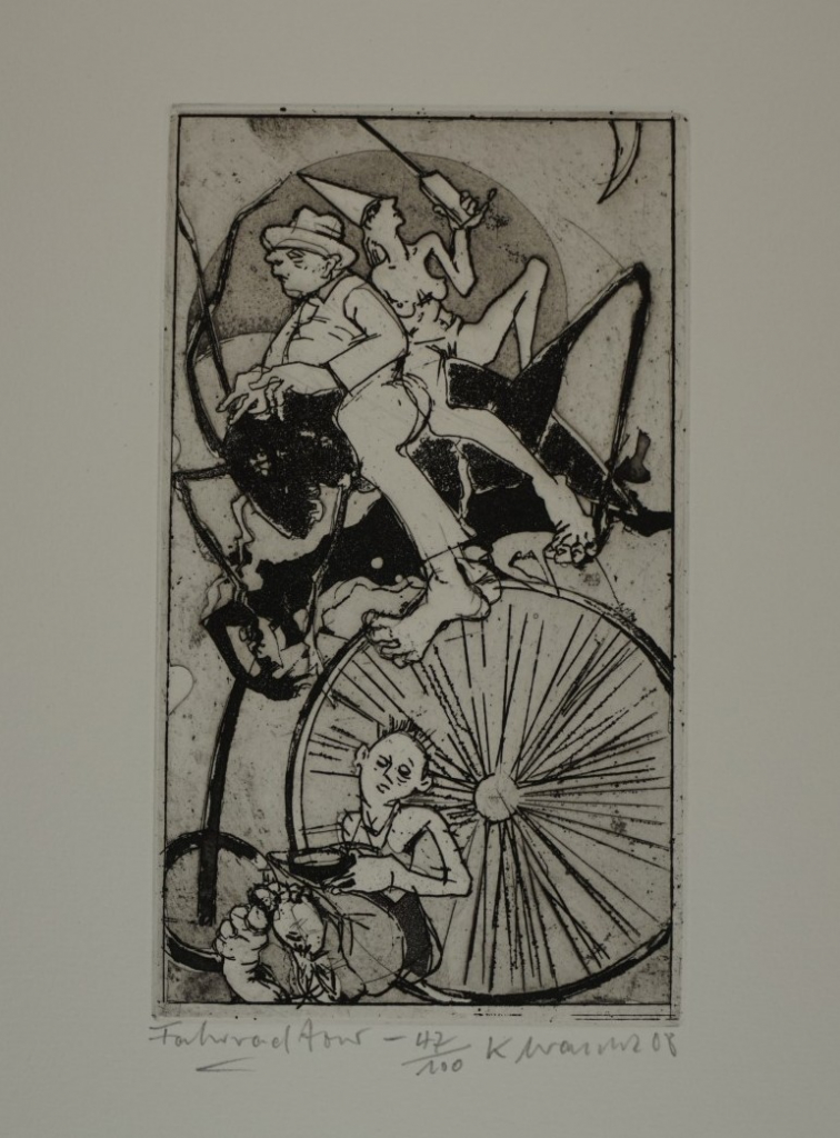 Galerie Bl.29 FahrradtourMappe: 70.Geburtst.Karl-Georg HirschRadierung, 31,0x20,0 cm, 47I100 Waschk Klaus