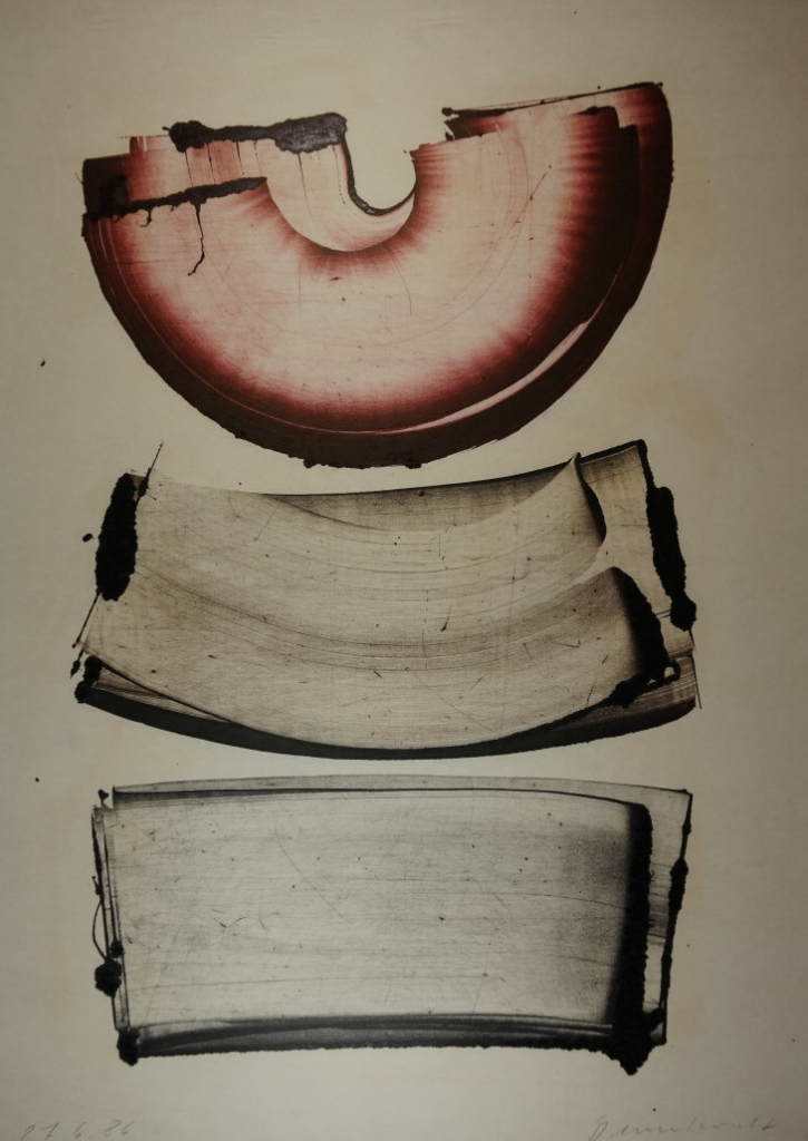 Galerie Bl.1Mappe: Grafik-Presse "eikon" Dennhardt Klaus "Drei Linien in ihrer Wandlung"Monotypie, 70,0x50,0 cm, 27.06.1986Dennhardt Klaus