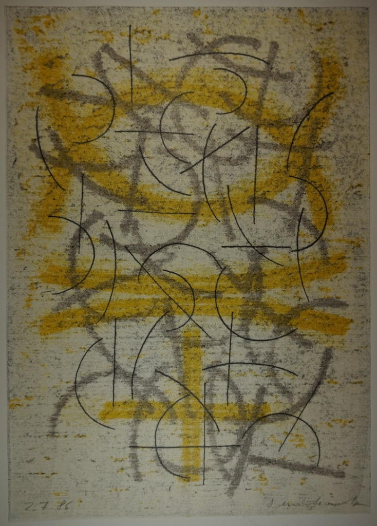 Galerie Bl.10Mappe: Grafik-Presse "eikon" Dennhardt Klaus "Drei Linien in ihrer Wandlung"Monotypie, 70,0x50,0 cm, 02.07.1986Dennhardt Klaus