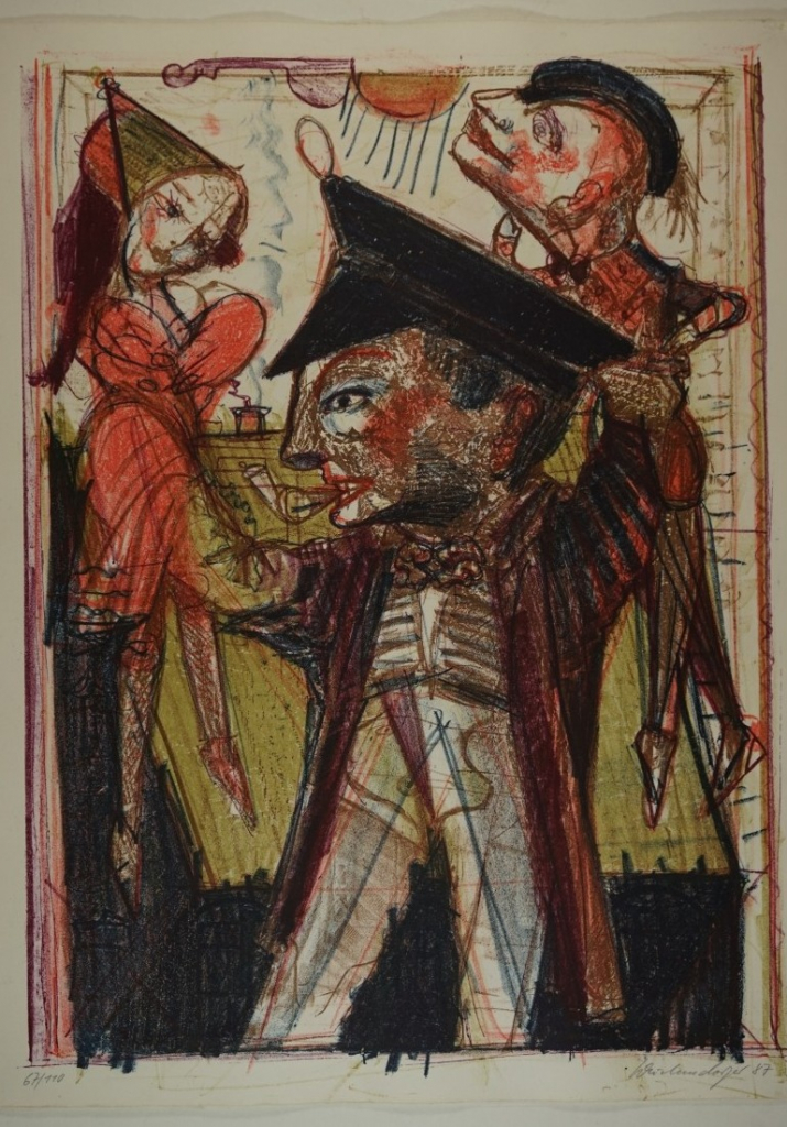 Galerie o.T Bl.5Mappe: Reclamverlag Grafikedition XXVI "Für Erwin Strittmatter"Lithografie, 46,0x34,0 48,5x36,5 cm, 67/100 1987Weidensdorfer Claus