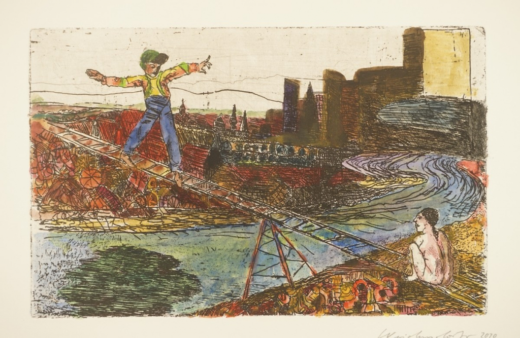 aquarellierte Radierung