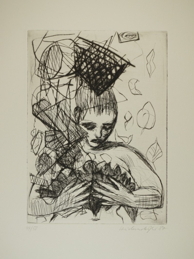 Galerie Bl.7 BlätterfallMappe: B53 1988 VEB Zierpflanzen & Saatgut DresdenRadierung, 24,7x18,5 53,5x39,5 cm, 44/50 1987Weidensdorfer Claus