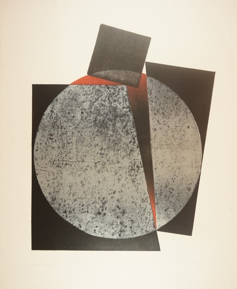 Galerie 2 Quadrate + 4 Kreisschnitte IIIFarbholzschnitt, 53,5x43,0 70,0x56,3 cm, Unikat 2010Werdin Susanne