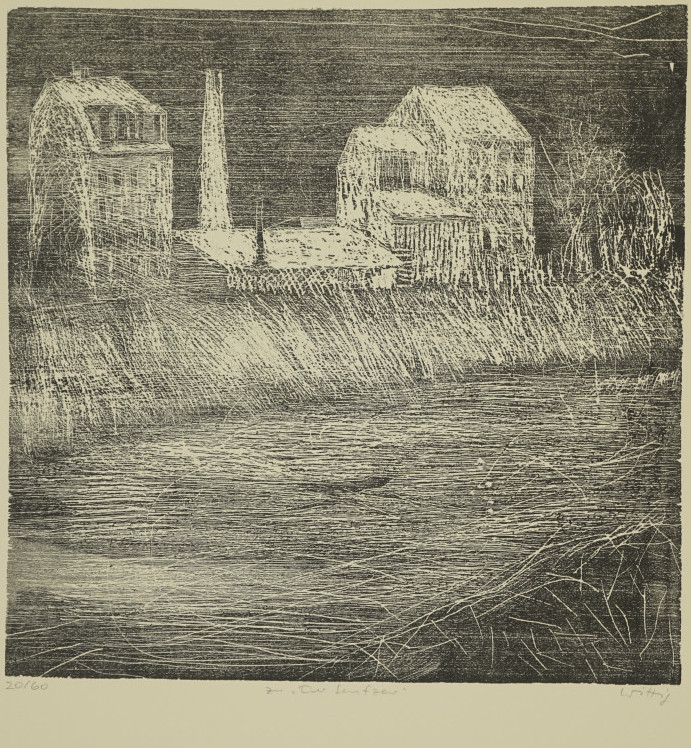 Galerie zu "Der Seufzer" Bl.13Mappe: Grafik-Presse "eikon" Wittig W. "Tagnachtlampe"Holzriss, 33,0x33,0 55,0x44,0 cm, 20/60 1984Wittig Werner