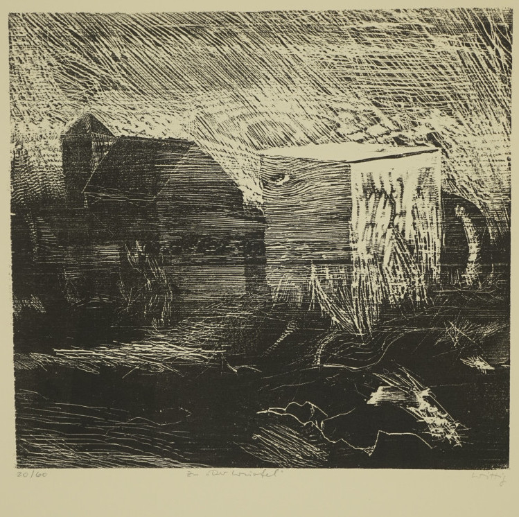 Galerie Zu "Der Würfel" Bl.18Mappe: Grafik-Presse "eikon" Wittig W. "Tagnachtlampe"Holzriss, 30,0x32,2 44,0x55,0 cm, 20/60 1982/84Wittig Werner