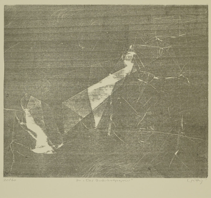 Galerie Zu "Das Butterbrotpapier" Bl.19Mappe: Grafik-Presse "eikon" Wittig W. "Tagnachtlampe"Holzriss, 25,7x30,4 44,0x55,0 cm, 20/60 1984Wittig Werner