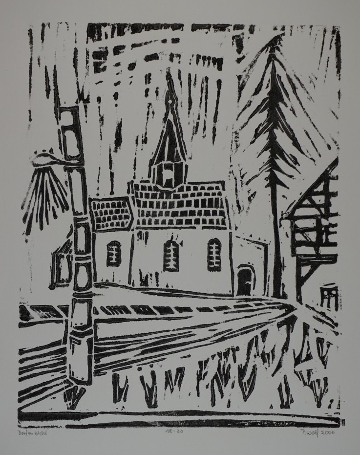 Galerie Bl.10 DorfansichtMappe: 6.HolzbildhauerpleinairHolzschnitt, 24,5x19,5 39,7x29,6 cm, 18-30 2006Wolf Peter