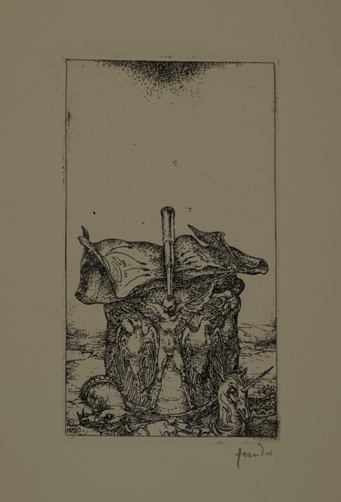Galerie Des Kaisers goldene Trommel Bl.19Mappe: Galerie Am Sachsenplatz Edition M12 Zander H. "Stille Landfahrten"Radierung, 15,0x8,5 26,7x19,6 cm, 16/50Zander Heinz