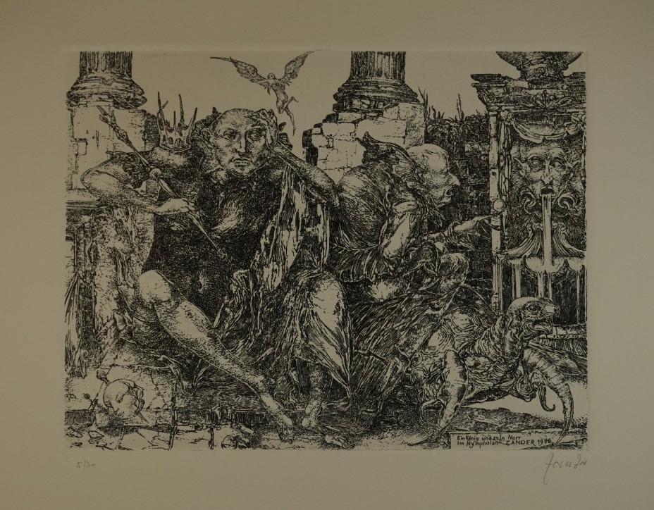 Galerie Ein König und sein Narr im HypaionMappe: Galerie Am Sachsenplatz Edition M7 Zander H.Radierung, 19,0x24,5 39,5x53,0 cm, 5/70 1980Zander Heinz