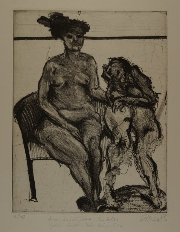 Galerie Bl.1 Zwei befreundete Modelle zwei verfeindeter KünstlerMappe: B53 2/85 "Akt"Radierung, 31,4x23,9 57,0x45,0 cm, 1/40 1985Diller Michael