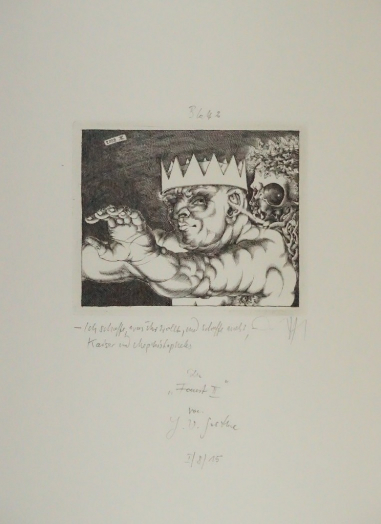 Galerie Bl.2 Ich schaffe, was ihr wollt, und...Mappe: Zettl B. "Der Tragödie zweiter Teil" zu FaustKupferstich, 9,0x11,0 38,0x27,1 cm, 8/15 2009Zettl Baldwin