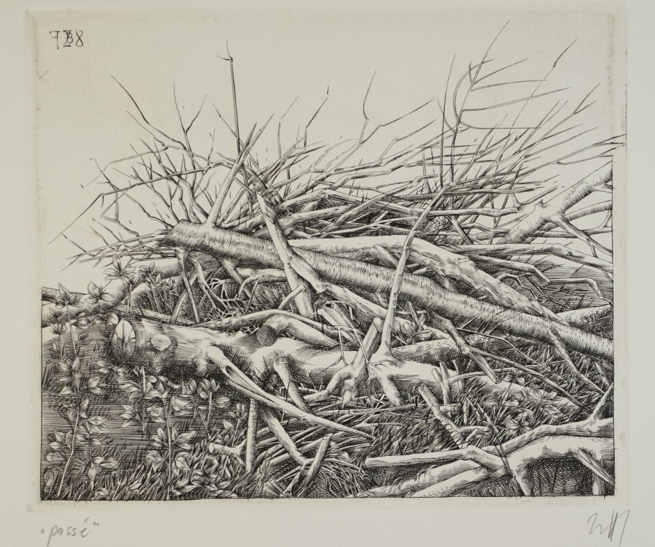 Galerie passé Bl.1Mappe: Grafik-Presse "eikon" Zettl B. "Paysages"Kupferstich, 16,0x19,0 37,0x43,5 cm, I/9/100 1978Zettl Baldwin