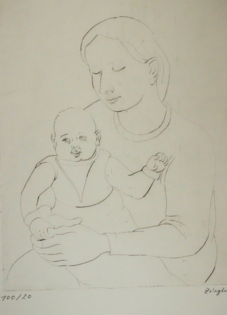 Galerie Bl.9 Mutter und KindMappe: Aspekte 14.LDPD-ParteitagRadierung, 32,7x25,0 50,0x40,0 cm, 20/100 1986Ziegler Thomas