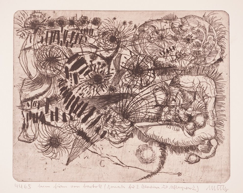 Galerie Bl.6 Beim hören von BartokMappe: Kabinettpresse 1.Druck "Huldigung an die Musik"Radierung, 26,7x33,6 51,3x41,3 cm, 10/80 1965Schulz Hanfried
