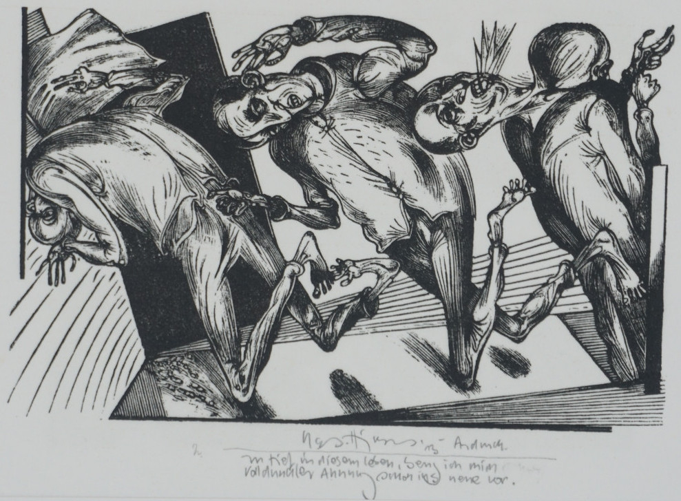 Galerie zu tief in diesem Leben, beug ich voll dunkler Ahnung schon ins neue vorHolzschnitt, 10,6x17,3 50,2x35,3 cm, Andruck 2013Hirsch Karl-Georg