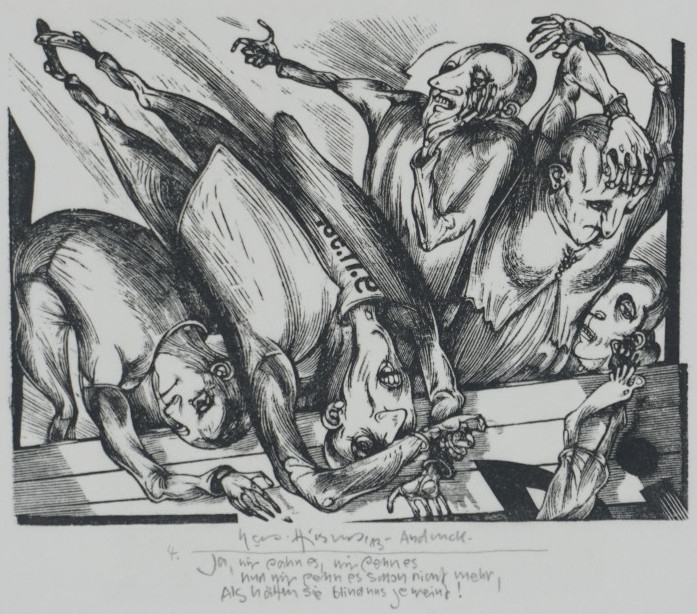 Galerie ja, wir sehn es,wir sehn es, wir sehn es schon nicht mehr, als hätten sie uns blind geweintHolzschnitt, 11,3x15,0 50,3x35,3 cm, Andruck 2013Hirsch Karl-Georg